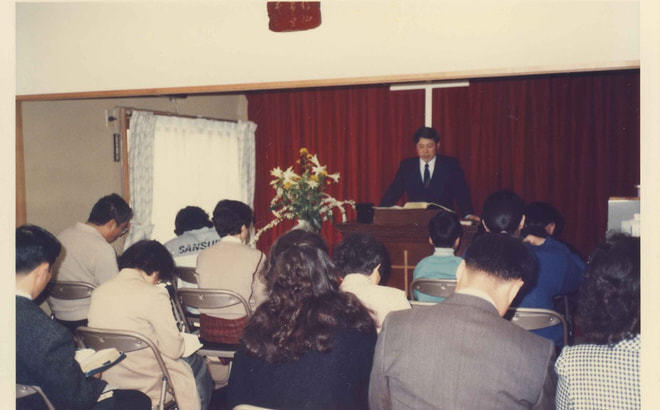 そこで、同年12月末に帰国し、渋谷区笹塚に伝道所を開設しました。のち、渋谷駅近く、北谷、川崎、田畑、桜ヶ丘に教会を、東京都内や宇都宮、仙台に伝道所を設けました。